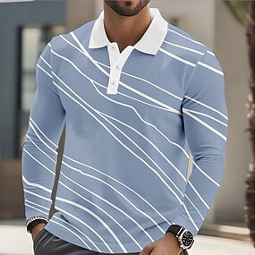 男性用 幾何学的な ライン ポロ 長袖 ポロシャツ ラペル ビジネスカジュアル アスレイジャー デイリーウェア 3Dプリント ボタン 春 秋 冬 ブルー グリーン ライトブルー