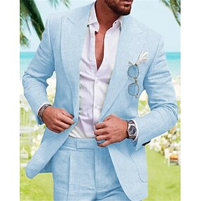 男性用 リネンブレザー セット ビジネス カクテルパーティー ウェディングパーティー ファッション カジュアル 春 秋 リネン 30% ポリエステル60% 平織り ポケット 2個 快適 シングルブレスト ブレザー ホワイト カーキ色 ライトブルー