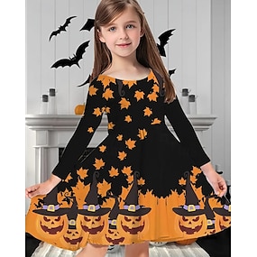 ハロウィーン 女子 3D グラフィック ドレス 長袖 夏 春 バケーション 日常 祝日 プリンセス 美しい 甘い 子供 4〜12年 カジュアルドレス A ラインドレス 膝丈 レギュラー