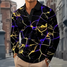 男性用 抽象的 幾何学的な ポロ 長袖 ポロシャツ ラペル カジュアル アウトドア ストリート アスレイジャー デイリーウェア 3Dプリント ボタン 春 秋 冬 ブルー ゴールド グリーン