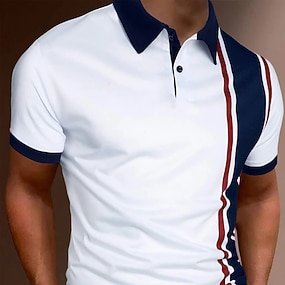 男性用 ポロシャツ ゴルフシャツ カジュアル 祝日 クラシック 半袖 ファッション ベーシック カラーブロック ボタン 夏 レギュラー ホワイト レッド ブラックホワイト ポロシャツ