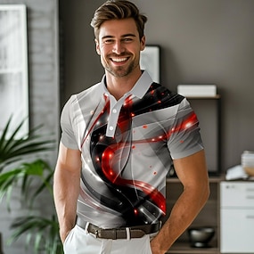 男性用 抽象的 直管形 ポロシャツ ゴルフシャツ 半袖 シャツ 折襟 カジュアル 日常 3Dプリント ピンク ブルー グリーン グレー プリント 衣類 ファッション デザイナー カジュアル 高通気性