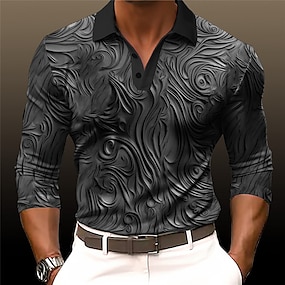 男性用 幾何学模様 ポロシャツ ゴルフシャツ 長袖 ポロシャツ 襟付きシャツ ビジネスカジュアル 作業服 フォーマルウェア フェスティバルウェア 3Dプリント ボタン 秋冬 ブラック ホワイト