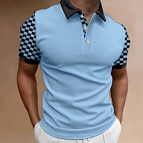 男性用 ゴルフシャツ ゴルフポロシャツ ワーク カジュアル ラペル 半袖 ベーシック 近代の カラーブロック 千鳥格子 パッチワーク 春夏 レギュラー ブラック ホワイト レッド ダークブルー ブルー ベージュ ゴルフシャツ