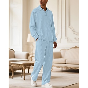 男性用 ワッフルポロシャツ ゴルフシャツ 長袖 カラー ラペル 春 秋 オールシーズン 平織り テクスチャード加工 ベーシック 近代の カジュアル 2個 ボタン ストリート カジュアル スポーツ A B C メンズトップTシャツ