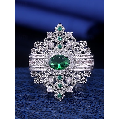 女性用ヴィンテージエメラルドクラウンリング - 婚約、結婚式、特別な機会にぴったりのエレガントな王室風ジュエリー