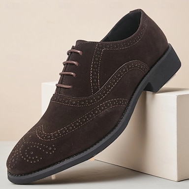 ウィングチップデザインとラバーソールを備えたメンズブラウンブローグオックスフォードシューズ - ビジネス、オフィス、特別なイベントに最適なクラシックなフォーマルシューズ