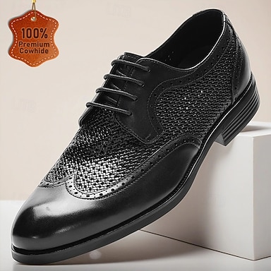 メンズ ブラック本革ブローグオックスフォードシューズ - ビジネス、宴会、フォーマルウェアに最適なエレガントなレースアップドレスシューズ