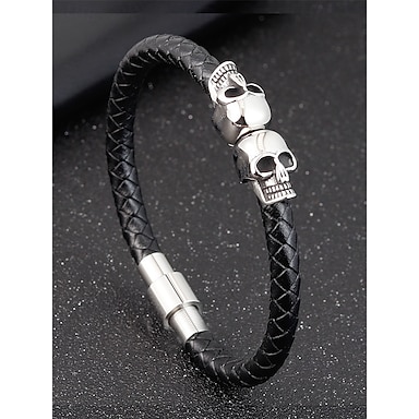 メンズのハロウィンスカル - 装飾されたレザーと合金のブレスレット、ゴシックスタイル、お祝いのパーティーやエッジの効いた毎日のルックスに最適