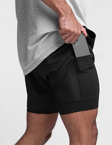 男性用 ランニングショーツ ジムショーツ スウェットショーツ ポケット ドローストリング 2 イン 1 弾性ウエストバンド ショートパンツ アウトドア スポーツ 屋内 高通気性 速乾性 ライトウェイト ソフト マラソン ランニング いい結果になる テイラーフィット スポーツウェア アクティブウェア ソリッド ブラック ホワイト カーキ色