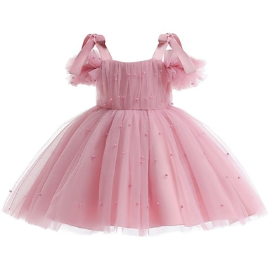 フラワーガールドレス キッズ 女の子 プリンセスドレス 性能 結婚式 パーティー エレガント 美しい メッシュ 純色 半袖 クルーネック ホワイト ピンク 4年以上
