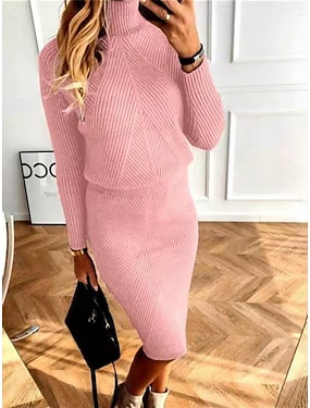 女性用 ミディドレス セータードレス カジュアルドレス シースドレス ファッション 近代の 日常 週末 レギュラー 平織り 長袖 タートルネック ホワイト ピンク ルビーレッド ライトグレー 春 秋 冬