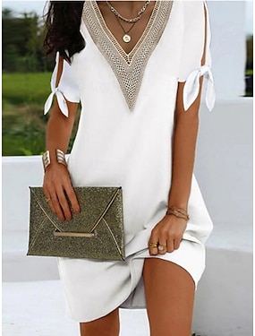レディース バレンタイン レース ドレス ミニドレス コットン レース パッチワーク デート ストリートウェア ベーシック Vネック 半袖 ホワイト ピンク グレー