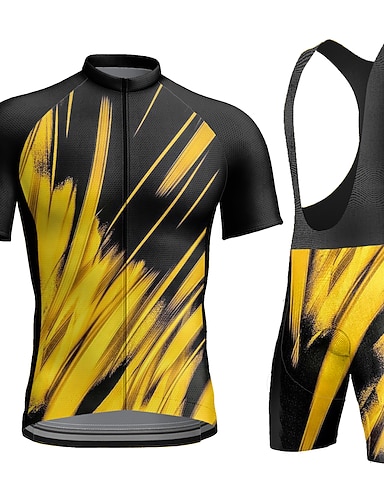 男性用 サイクリングジャージー ビブショーツ付きサイクリングジャージー 半袖 イエロー バイク スポーツ グラフィック 幾何学模様 衣類