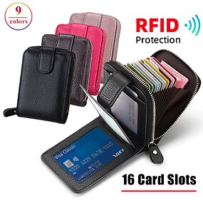 Rfidクレジットカードホルダー16カードスロット財布本革運転免許証IDカードホルダー財布クレジットカードケースマグネット式シングルコンパートメント女性用男性用
