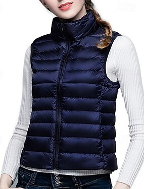 女性用 ベスト ストリート カジュアル カジュアル/普段着 秋 冬 コート レギュラー コンテンポラリー スタイリッシュ カジュアル ジャケット ノースリーブ 純色 ポケット付き ライトブルー クラレット シーブルー