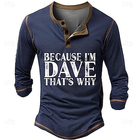 男性用おもしろい長袖ヘンリ―シャツ - 'だって私はデイブだから' ライフスタイルとアイデンティティのためのグラフィック T シャツ