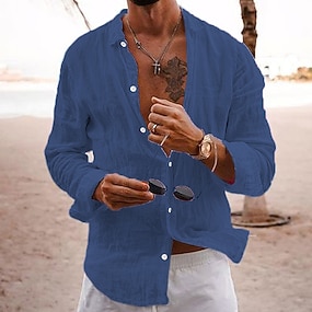 男性用 シャツ リネンシャツ サマーシャツ ビーチウェア ボタンアップシャツ 純色 バケーション キュリーズ ブラック ホワイト ピンク ネイビーブルー 長袖 カラー 春夏 衣類 ボタンダウン