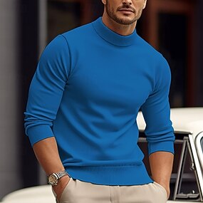 男性用 プルオーバーセーター ニットセーター リブ ニット ニット 平織り モックネック ベーシック 保温 デイリーウェア バケーション 衣類 秋冬 ブラック ホワイト S M L