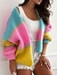 女性用 ニット カーディガン ストリートファッション カジュアル カラーブロック Vネック パッチワーク ニット 長袖 レギュラートップス ニット 日常 お出かけ 週末 ピンク オレンジ 秋 冬