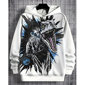 男の子 3D 動物 恐竜 パーカー 長袖 3Dプリント 秋 冬 活発的 スポーツ ファッション ポリエステル 子供 3〜13歳 アウトドア 日常 屋内 レギュラー