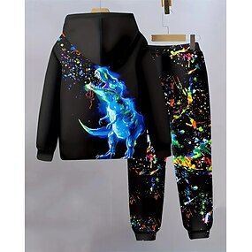 男の子 3D 恐竜 パーカー&パンツ セット 長袖 3Dプリント 秋 冬 活発的 ファッション クール ポリエステル 子供 3〜12年 アウトドア ストリート バケーション レギュラー