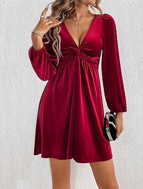 女性用 ミニドレス ベルベットドレス 二次会ドレス / カクテルドレス エレガント ファッション 近代の アウトドア パーティー パーティーイブニングウェア レギュラー 平織り 長袖 Vネック グリーン 春 秋