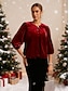 クリスマス レディース ベルベット ツインセット ジャケット ベスト ボタンアップ ドレッシー トップス エレガント パーティー 7分袖 パフスリーブ クルーネック レギュラー トップス パーティー イブニングウェア ホリデー パーティー 衣装 ワイン 春 秋 冬
