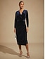 女性用 ミディドレス シフォンドレス エレガント パーティー 誕生日 レギュラー 純色 七分袖 クルーネック ネイビーブルー 夏 春 秋