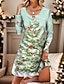 女性用 ミニドレス カジュアルドレス 花柄ドレス サマードレス ファッション 近代の 日常 ビーチ 週末 レギュラー フラワー 七分袖 Vネック ブラック ホワイト イエロー ルビーレッド 夏
