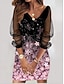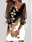 女性用 ミニドレス シフトドレス カジュアル 日常 祝日 レギュラー オンブル’ フラワー バタフライ 長袖 Vネック ブラック ホワイト パープル ゴールド 春 秋