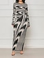 女性用 ロングドレス マキシドレス 黒いドレス 二次会ドレス / カクテルドレス フォーマルドレス エレガント 近代の ランタンスリーブ バケーション パーティー お出かけ レギュラー フラワー グラフィック 長袖 クルーネック ブラック ワイン ブルー パープル 春 秋