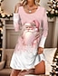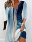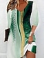 女性用 ミニドレス カジュアルドレス サマードレス ファッション 近代の バケーション 日常 週末 レギュラー フラワー グラフィック カラーグラデーション 七分袖 Vネック ホワイト ピンク ワイン ネイビーブルー 夏