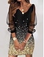 女性用 ミニドレス パーカードレス エレガント ファッション 近代の バケーション 日常 お出かけ レギュラー レオパード スカル ストライプ 長袖 タートルネック ブラックとホワイト 豹柄 ブラック ブラウン 秋 冬