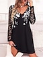 女性用 ミニドレス 黒いドレス スパンコールドレス レースドレス カジュアルドレス ファッション 近代の 日常 ビーチ 週末 レギュラー 平織り 長袖 クルーネック ブラック 夏 春 秋