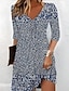女性用 ミニドレス プリントドレス ファッション 近代の オフィス お出かけ レギュラー 抽象的 七分袖 Vネック 青緑 ブルー グリーン ダークブルー 春 秋