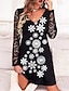 女性用 ミディドレス カジュアルドレス 冬のドレス プリントドレス 活発的 ファッション ストリートファッション バケーション ストリート 日常 レギュラー フラワー カラーブロック 長袖 クルーネック ブラック 秋 冬