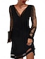 女性用 ミニドレス 黒いドレス カジュアルドレス 二次会ドレス / カクテルドレス フォーマルドレス カジュアル スポーツ ストリート レギュラー 平織り 長袖 Vネック ブラック ホワイト 秋 冬