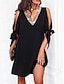 女性用 ミニドレス シフトドレス カジュアル 日常 レギュラー 平織り 半袖 Vネック ブラック 夏