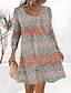女性用 ミニドレス カジュアルドレス プリントドレス ファッション 近代の アウトドア バケーション 日常 レギュラー ルーズフィット フラワー 多色の 長袖 クルーネック カーキ色 秋 冬