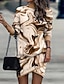 女性用 ミニドレス カジュアルドレス 近代の アウトドア バケーション 日常 レギュラー 平織り 長袖 クルーネック アプリコット 春 秋