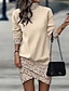女性用 ミニドレス パーカードレス エレガント ファッション 近代の バケーション 日常 お出かけ レギュラー レオパード スカル ストライプ 長袖 タートルネック ブラックとホワイト 豹柄 ブラック ブラウン 秋 冬