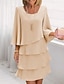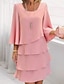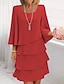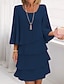 女性用 ミニドレス シフォンドレス ティアードワンピース ファッション 近代の アウトドア バケーション お出かけ レギュラー 平織り 七分袖 クルーネック ピンク ルビーレッド ネイビーブルー カーキ色 春 秋