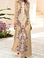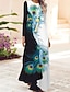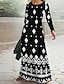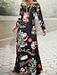 女性用 ロングドレス マキシドレス 自由奔放に生きるドレス エレガント ヴィンテージ ファッション アウトドア 日常 お出かけ レギュラー グラフィック フラワー 長袖 クルーネック ブラック イエロー ピンク ブルー 春 秋