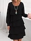女性用 ミニドレス 黒いドレス ティアードワンピース ファッション 近代の アウトドア ティーパーティー お出かけ レギュラー 平織り 七分袖 クルーネック ブラック 春 秋
