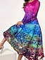 女性用 ミニドレス カジュアルドレス シフトドレス カジュアル バットウィングスリーブ クリスマス 祭り ルーズフィット プリント 長袖 Vネック ブルー パープル オレンジ グレー 秋 冬