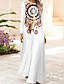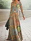 女性用 マキシドレス サマードレス カジュアル ボヘミアン 日常 レギュラー グラフィック ノースリーブ ノッチネック ホワイト イエロー ワイン グレー 夏
