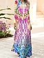 女性用 ミディドレス プリントドレス ファッション 近代の バケーション お出かけ レギュラー グラフィック 半袖 Vネック ルビーレッド ブルー パープル カーキ色 春 秋