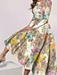 女性用 ミディドレス サマードレス プリントドレス エレガント 日常 レギュラー フラワー 幾何学模様 半袖 クルーネック ライトイエロー ライトピンク 鮮やかなピンク色 ピンク 夏