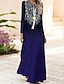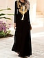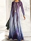 女性用 ロングドレス マキシドレス 黒いドレス 二次会ドレス / カクテルドレス フォーマルドレス エレガント 近代の ランタンスリーブ バケーション パーティー お出かけ レギュラー フラワー グラフィック 長袖 クルーネック ブラック ワイン ブルー パープル 春 秋